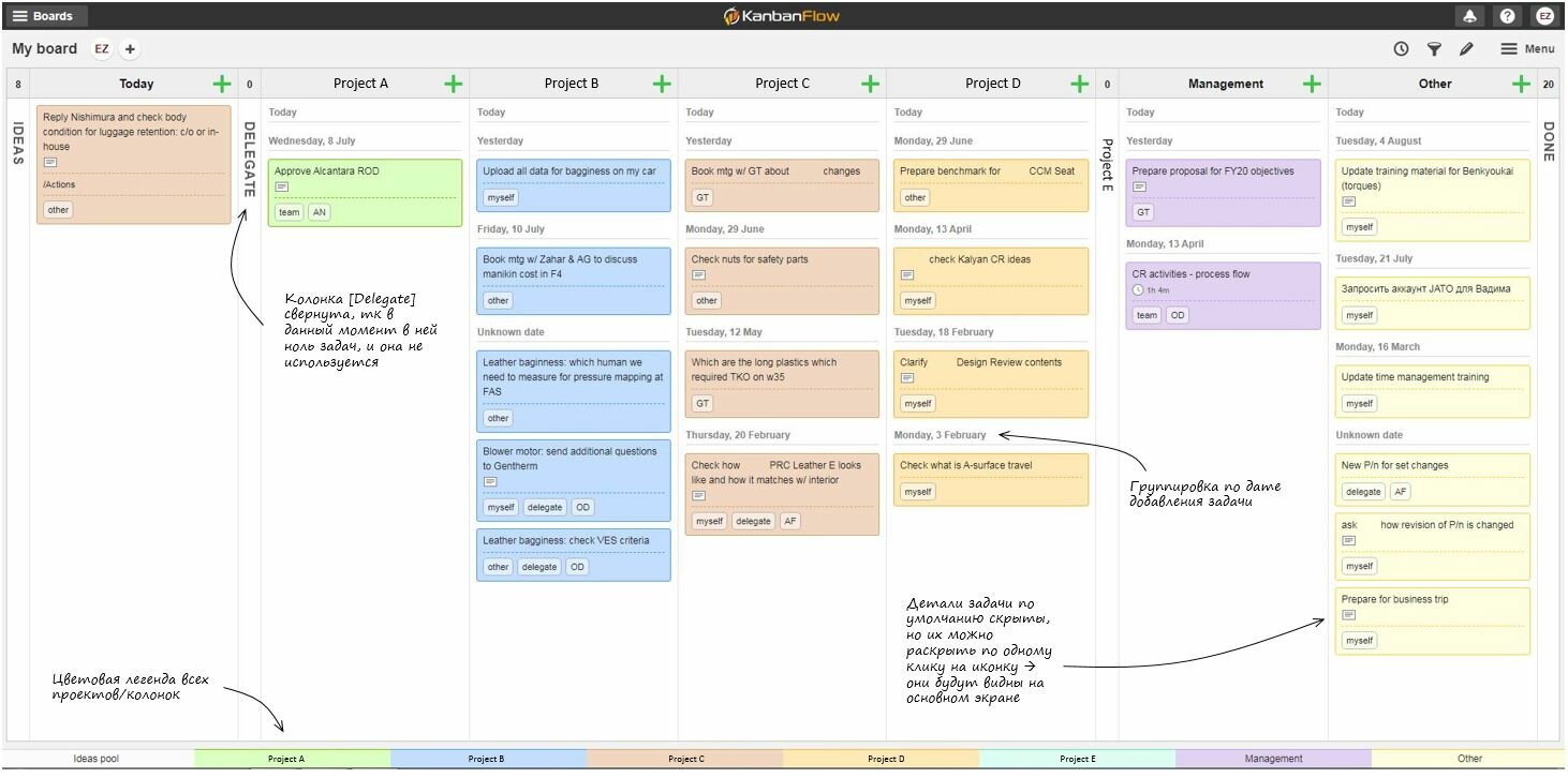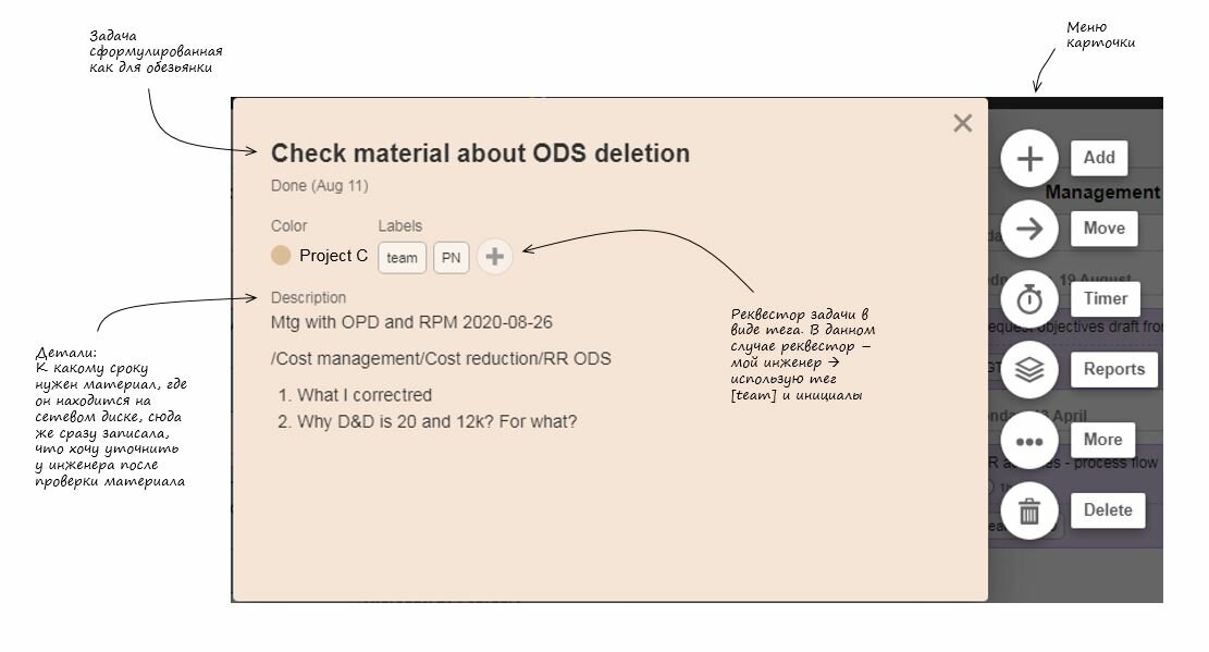 В чем была проблема: очень много входящих из разных источников, включая неявные (почта, митинги, разговоры с командой, руководитель, собственные мысли). Не получалось все входящие вовремя разбирать, как следствие тревога и отсутствие контроля. При этом я не руководила проектом, а скорее руководила 4мя проджектами, у каждого из которых по несколько проектов. Не было понимания общего количества задач по каждому из проектов и где вот-вот наступит жопа.